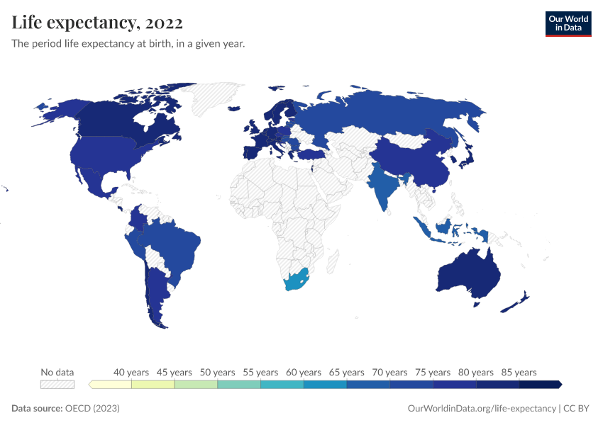 “Data Page: Life expectancy at birth”, part of the following publication: Saloni Dattani, Lucas Rodés-Guirao, Hannah Ritchie, Esteban Ortiz-Ospina, and Max Roser (2023) - “Life Expectancy”. Data adapted from OECD. Retrieved from https://archive.ourworldindata.org/20260304-094028/grapher/life-expectancy-at-birth-oecd.html [online resource] (archived on March 4, 2026).How to cite this data