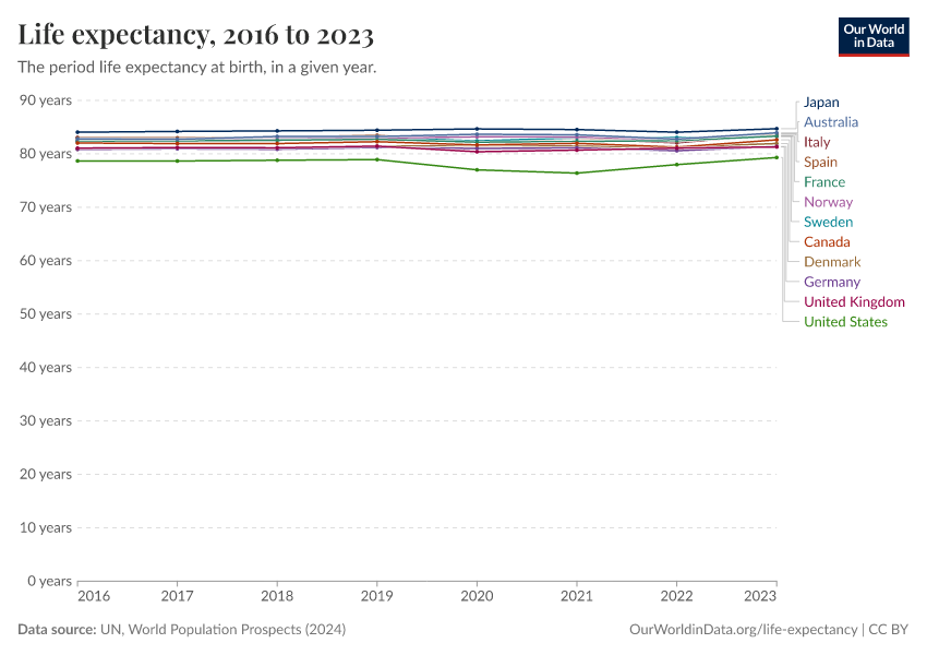 “Data Page: Life Expectancy, age 0”. Our World in Data (2026). Data adapted from United Nations. Retrieved from https://archive.ourworldindata.org/20250909-093708/grapher/life-expectancy-unwpp.html [online resource] (archived on September 9, 2025).How to cite this data