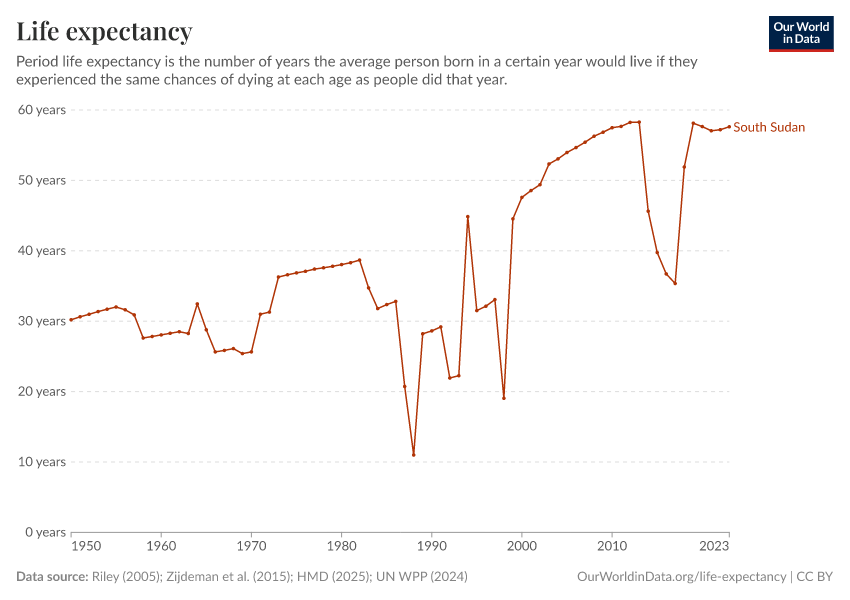 Riley (2005); Zijdeman et al. (2015); HMD (2025); UN WPP (2024) – with major processing by Our World in Data. “Life expectancy – Riley; Zijdeman et al.; HMD; UN WPP – Long-run data” [dataset]. Human Mortality Database, “Human Mortality Database”; United Nations, “World Population Prospects”; Zijdeman et al., “Life Expectancy at birth v2”; James C. Riley, “Estimates of Regional and Global Life Expectancy, 1800-2001” [original data]. Retrieved December 6, 2025 from https://archive.ourworldindata.org/20251022-222946/grapher/life-expectancy.html (archived on October 22, 2025).