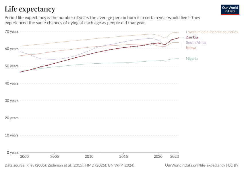“Data Page: Life expectancy”, part of the following publication: Saloni Dattani, Lucas Rodés-Guirao, Hannah Ritchie, Esteban Ortiz-Ospina, and Max Roser (2023) - “Life Expectancy”. Data adapted from Human Mortality Database, United Nations, Zijdeman et al., James C. Riley. Retrieved from https://archive.ourworldindata.org/20251022-222946/grapher/life-expectancy.html [online resource] (archived on October 22, 2025).How to cite this data