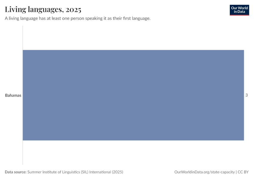 “Data Page: Living languages”, part of the following publication: Bastian Herre and Pablo Arriagada (2023) - “State Capacity”. Data adapted from Summer Institute of Linguistics (SIL) International. Retrieved from https://archive.ourworldindata.org/20251023-195030/grapher/living-languages.html [online resource] (archived on October 23, 2025).How to cite this data