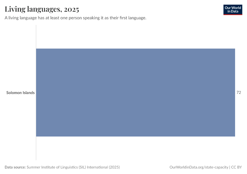 “Data Page: Living languages”, part of the following publication: Bastian Herre and Pablo Arriagada (2023) - “State Capacity”. Data adapted from Summer Institute of Linguistics (SIL) International. Retrieved from https://archive.ourworldindata.org/20251023-195030/grapher/living-languages.html [online resource] (archived on October 23, 2025).