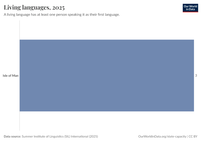 “Data Page: Living languages”, part of the following publication: Bastian Herre and Pablo Arriagada (2023) - “State Capacity”. Data adapted from Summer Institute of Linguistics (SIL) International. Retrieved from https://archive.ourworldindata.org/20260325-171315/grapher/living-languages.html [online resource] (archived on March 25, 2026).