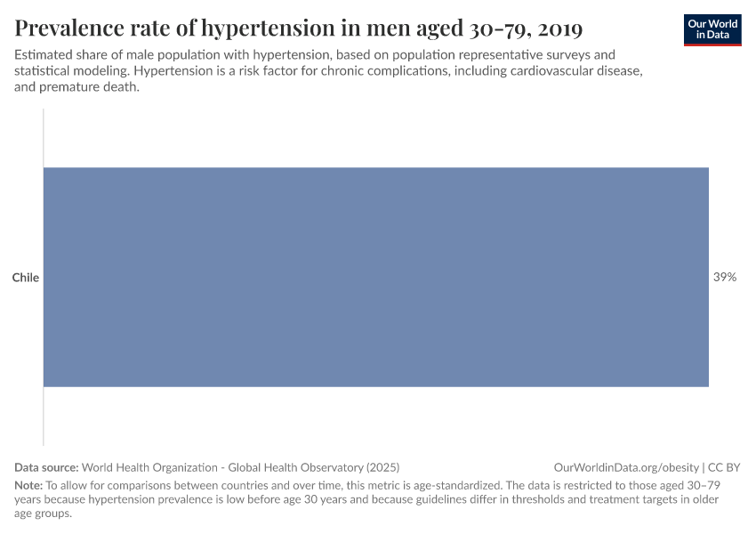 “Data Page: Prevalence rate of hypertension in men aged 30-79”. Our World in Data (2026). Data adapted from World Health Organization. Retrieved from https://archive.ourworldindata.org/20250909-093708/grapher/male-high-blood-pressure.html [online resource] (archived on September 9, 2025).