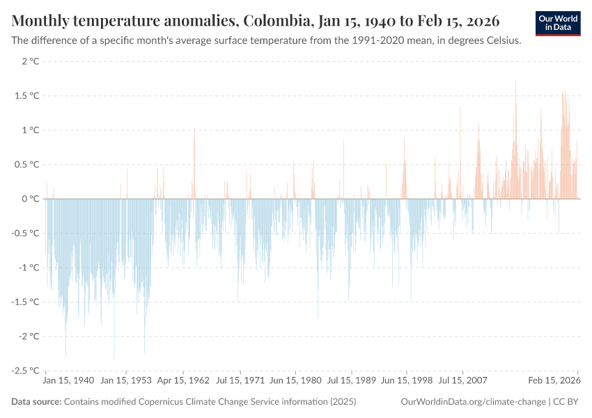 Contains modified Copernicus Climate Change Service information (2025) – with major processing by Our World in Data. “Monthly temperature anomalies” [dataset]. Contains modified Copernicus Climate Change Service information, “ERA5 monthly averaged data on single levels from 1940 to present 2” [original data]. Retrieved December 8, 2025 from https://archive.ourworldindata.org/20251110-151510/grapher/monthly-temperature-anomalies.html (archived on November 10, 2025).