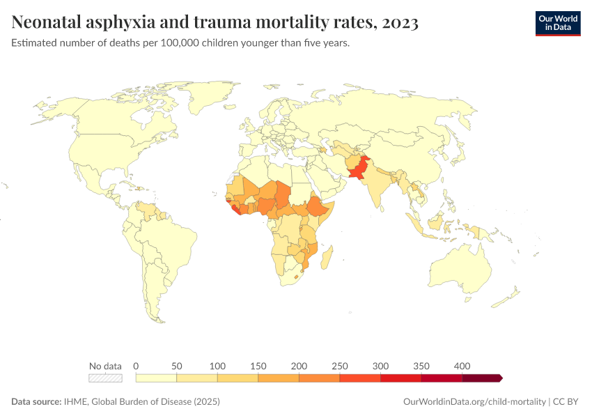 IHME, Global Burden of Disease (2025) – with major processing by Our World in Data. “Neonatal asphyxia and trauma mortality rates” [dataset]. IHME, Global Burden of Disease, “Global Burden of Disease - Deaths” [original data]. Retrieved March 15, 2026 from https://archive.ourworldindata.org/20260304-094028/grapher/mortality-neonatal-asphyxia-and-trauma.html (archived on March 4, 2026).