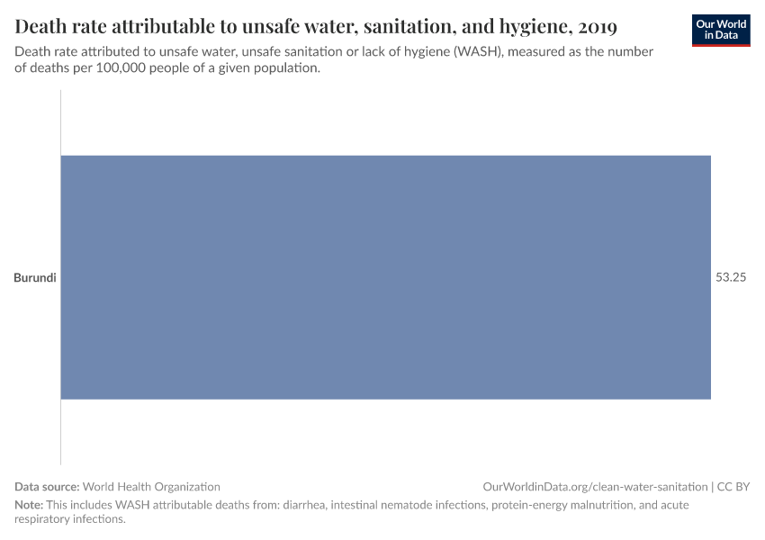 “Data Page: Death rate attributable to unsafe water, sanitation, and hygiene”. Our World in Data (2025). Data adapted from World Health Organization. Retrieved from https://archive.ourworldindata.org/20251125-165536/grapher/mortality-rate-attributable-to-wash.html [online resource] (archived on November 25, 2025).How to cite this data