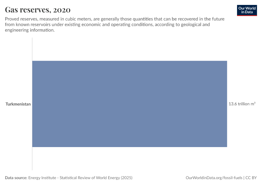 Energy Institute - Statistical Review of World Energy (2025) – with major processing by Our World in Data. “Gas proved reserves” [dataset]. Energy Institute, “Statistical Review of World Energy” [original data]. Retrieved January 11, 2026 from https://archive.ourworldindata.org/20250909-093708/grapher/natural-gas-proved-reserves.html (archived on September 9, 2025).