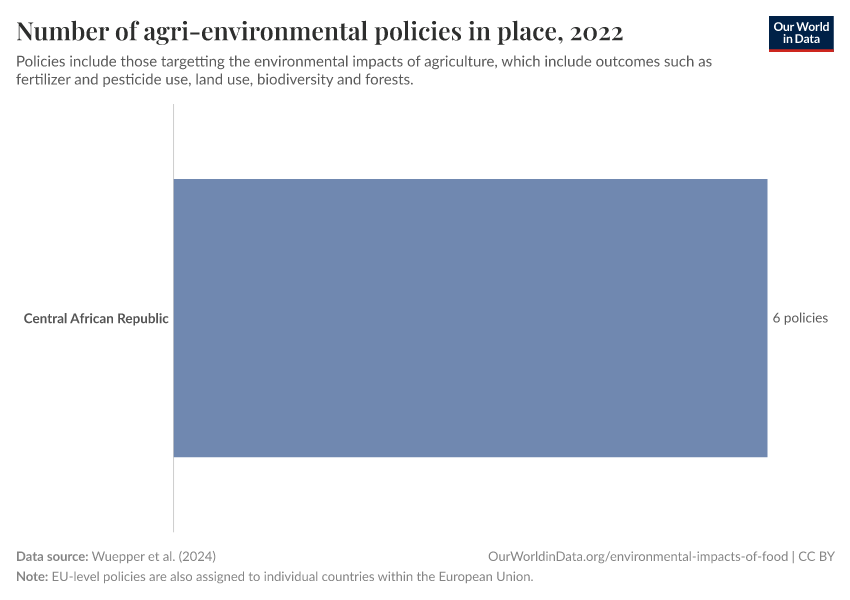 “Data Page: Number of agri-environmental policies in place”. Our World in Data (2025). Data adapted from Wuepper et al. (2024). Retrieved from https://archive.ourworldindata.org/20250909-093708/grapher/number-agri-environmental-policies.html [online resource] (archived on September 9, 2025).How to cite this data