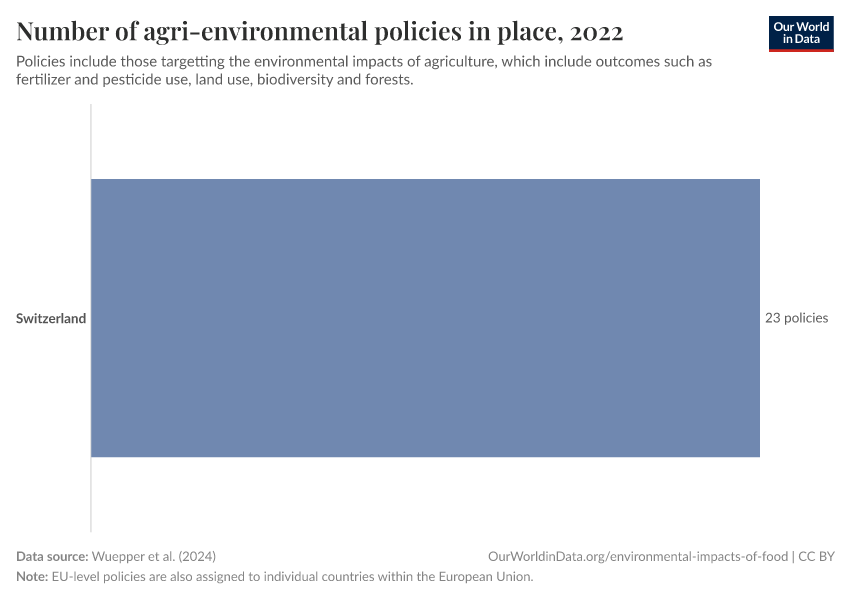 “Data Page: Number of agri-environmental policies in place”. Our World in Data (2025). Data adapted from Wuepper et al. (2024). Retrieved from https://archive.ourworldindata.org/20250909-093708/grapher/number-agri-environmental-policies.html [online resource] (archived on September 9, 2025).How to cite this data