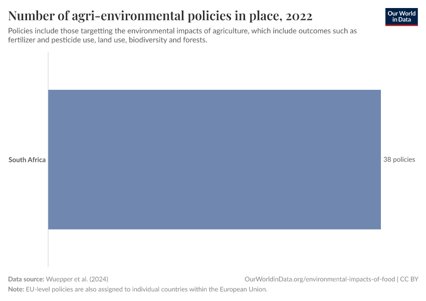 “Data Page: Number of agri-environmental policies in place”. Our World in Data (2025). Data adapted from Wuepper et al. (2024). Retrieved from https://archive.ourworldindata.org/20250909-093708/grapher/number-agri-environmental-policies.html [online resource] (archived on September 9, 2025).How to cite this data