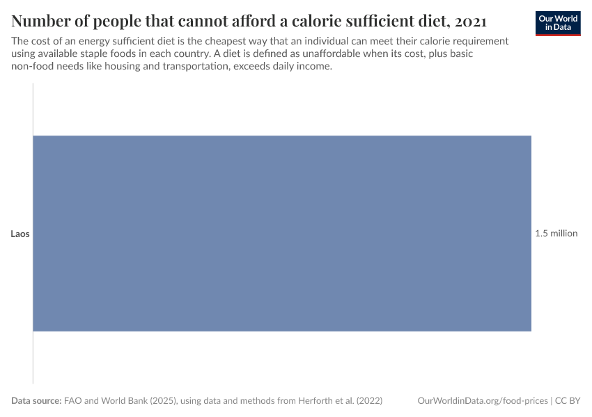 FAO and World Bank (2025), using data and methods from Herforth et al. (2022) – with minor processing by Our World in Data. “Number of people that cannot afford a calorie sufficient diet” [dataset]. Herforth et al. (2022), adapted by World Bank, “Food Prices for Nutrition 4.0” [original data]. Retrieved January 2, 2026 from https://archive.ourworldindata.org/20251013-180113/grapher/number-calorie-diet-unaffordable.html (archived on October 13, 2025).
