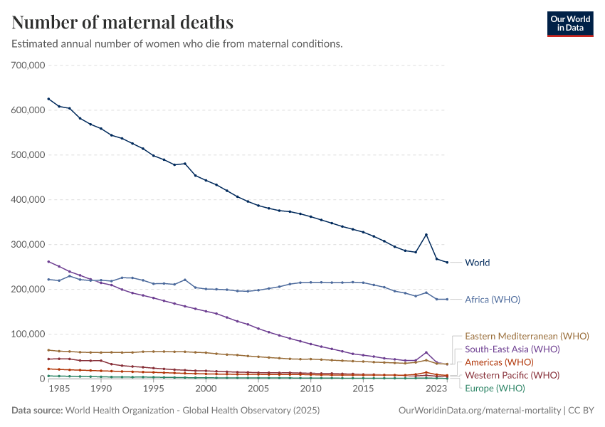 “Data Page: Number of maternal deaths”. Our World in Data (2026). Data adapted from World Health Organization. Retrieved from https://archive.ourworldindata.org/20260119-070102/grapher/number-of-maternal-deaths.html [online resource] (archived on January 19, 2026).How to cite this data