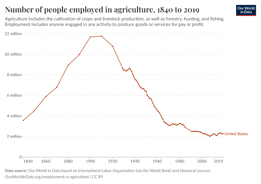 Number of people employed in agriculture