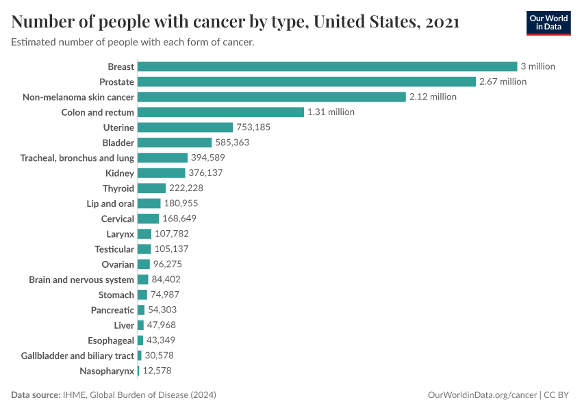 Number of people with cancer by type