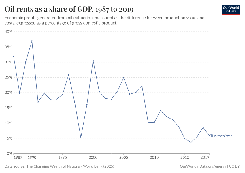 “Data Page: Oil rents as a share of GDP”. Our World in Data (2025). Data adapted from The Changing Wealth of Nations - World Bank. Retrieved from https://archive.ourworldindata.org/20250916-103535/grapher/oil-rents-as-a-share-of-gdp.html [online resource] (archived on September 16, 2025).