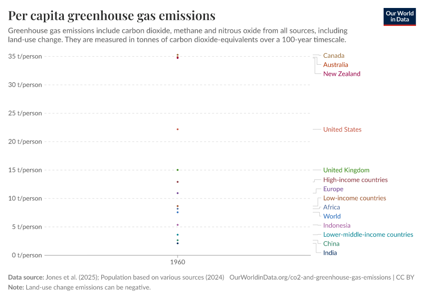 “Data Page: Per capita greenhouse gas emissions including land use”, part of the following publication: Hannah Ritchie, Pablo Rosado, and Max Roser (2023) - “CO₂ and Greenhouse Gas Emissions”. Data adapted from Jones et al., Various sources. Retrieved from https://archive.ourworldindata.org/20260304-094028/grapher/per-capita-ghg-emissions.html [online resource] (archived on March 4, 2026).How to cite this data