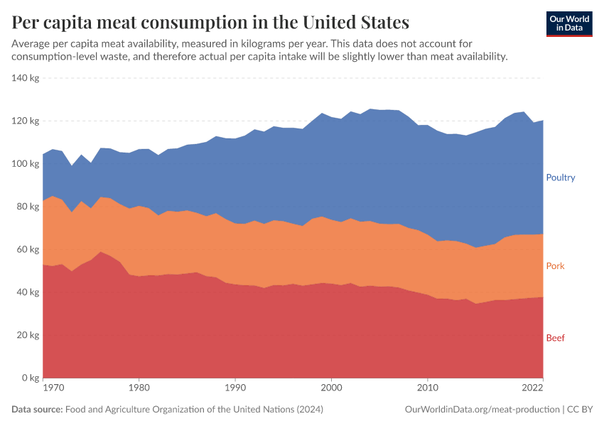 Per capita meat consumption in the United States