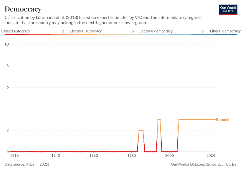 “Data Page: Political regime”, part of the following publication: Bastian Herre, Lucas Rodés-Guirao, and Esteban Ortiz-Ospina (2013) - “Democracy”. Data adapted from V-Dem. Retrieved from https://archive.ourworldindata.org/20250909-093708/grapher/political-regime-amb-row.html [online resource] (archived on September 9, 2025).