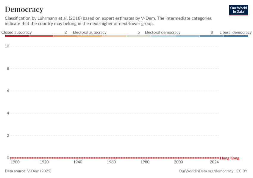 “Data Page: Political regime”, part of the following publication: Bastian Herre, Lucas Rodés-Guirao, and Esteban Ortiz-Ospina (2013) - “Democracy”. Data adapted from V-Dem. Retrieved from https://archive.ourworldindata.org/20250909-093708/grapher/political-regime-amb-row.html [online resource] (archived on September 9, 2025).How to cite this data