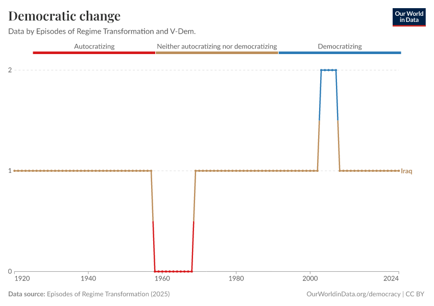 Episodes of Regime Transformation (2025) – processed by Our World in Data. “Democratic change” [dataset]. V-Dem, “Episodes of Regime Transformation v15” [original data]. Retrieved December 26, 2025 from https://archive.ourworldindata.org/20250909-093708/grapher/political-regime-ert.html (archived on September 9, 2025).
