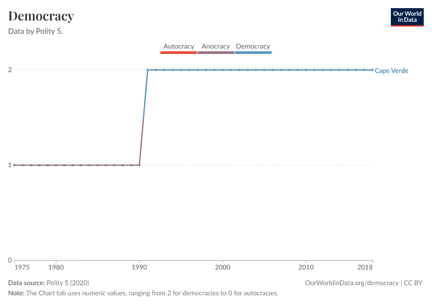 • We have other democracy data sources that also cover more recent years and have more precise data. You can find them in our Key Democracy Charts and Democracy Data Explorer.