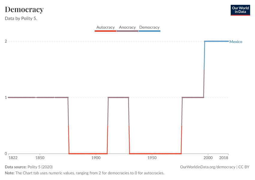 - We have other democracy data sources that also cover more recent years and have more precise data. You can find them in our Key Democracy Charts and Democracy Data Explorer.