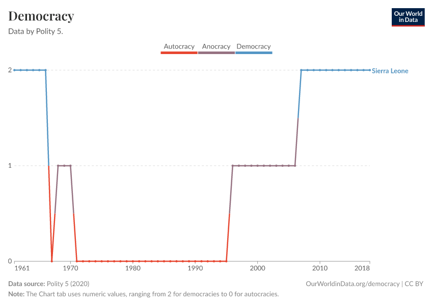 - We have other democracy data sources that also cover more recent years and have more precise data. You can find them in our Key Democracy Charts and Democracy Data Explorer.