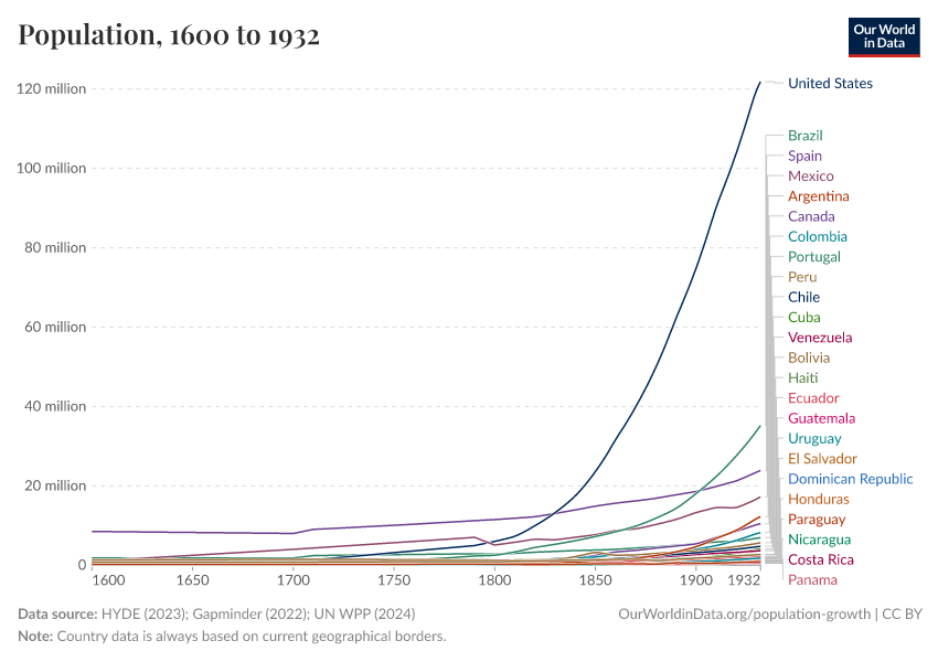 Population by country, available from 10,000 BCE to 2023, based on data and estimates from different sources.