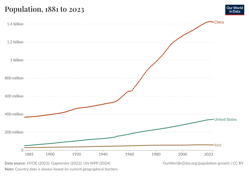 “Data Page: Population”, part of the following publication: Hannah Ritchie, Lucas Rodés-Guirao, Edouard Mathieu, Marcel Gerber, Esteban Ortiz-Ospina, Joe Hasell, and Max Roser (2023) - “Population Growth”. Data adapted from PBL Netherlands Environmental Assessment Agency, Gapminder, United Nations. Retrieved from https://archive.ourworldindata.org/20260119-065148/grapher/population.html [online resource] (archived on January 19, 2026).