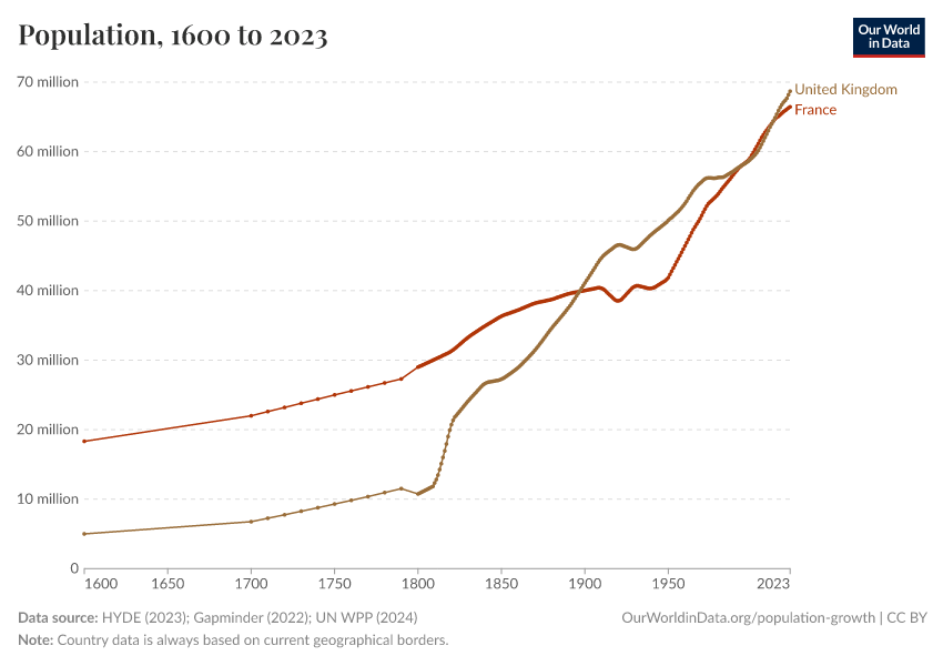 “Data Page: Population”, part of the following publication: Hannah Ritchie, Lucas Rodés-Guirao, Edouard Mathieu, Marcel Gerber, Esteban Ortiz-Ospina, Joe Hasell, and Max Roser (2023) - “Population Growth”. Data adapted from PBL Netherlands Environmental Assessment Agency, Gapminder, United Nations. Retrieved from https://archive.ourworldindata.org/20250929-103213/grapher/population.html [online resource] (archived on September 29, 2025).