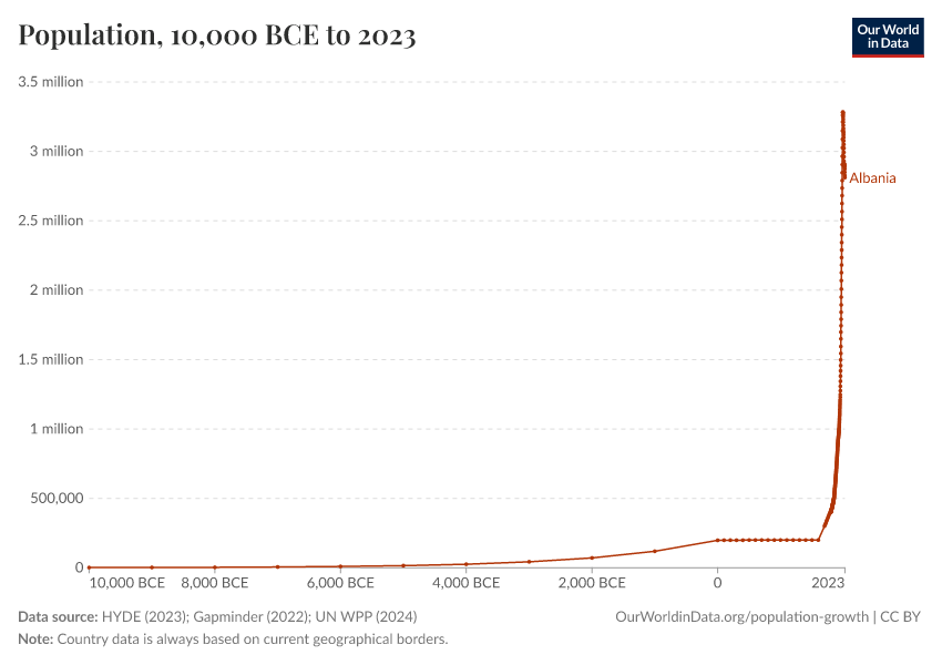 “Data Page: Population”, part of the following publication: Hannah Ritchie, Lucas Rodés-Guirao, Edouard Mathieu, Marcel Gerber, Esteban Ortiz-Ospina, Joe Hasell, and Max Roser (2023) - “Population Growth”. Data adapted from PBL Netherlands Environmental Assessment Agency, Gapminder, United Nations. Retrieved from https://archive.ourworldindata.org/20260309-085120/grapher/population.html [online resource] (archived on March 9, 2026).