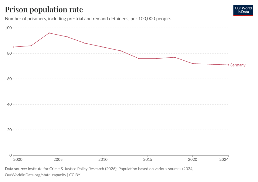 “Data Page: Prison population rate”. Our World in Data (2026). Data adapted from Institute for Crime & Justice Policy Research, Various sources. Retrieved from https://archive.ourworldindata.org/20260213-171235/grapher/prison-population-rate.html [online resource] (archived on February 13, 2026).How to cite this data