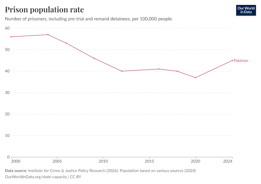 “Data Page: Prison population rate”. Our World in Data (2026). Data adapted from Institute for Crime & Justice Policy Research, Various sources. Retrieved from https://archive.ourworldindata.org/20260213-171235/grapher/prison-population-rate.html [online resource] (archived on February 13, 2026).How to cite this data