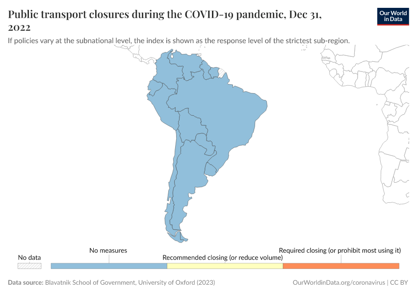 Blavatnik School of Government, University of Oxford (2023) – with minor processing by Our World in Data. “Public transport closures during the COVID-19 pandemic” [dataset]. Blavatnik School of Government, University of Oxford, “Government Response Tracker (OxCGRT)” [original data]. Retrieved December 7, 2025 from https://archive.ourworldindata.org/20250909-093708/grapher/public-transport-covid.html (archived on September 9, 2025).