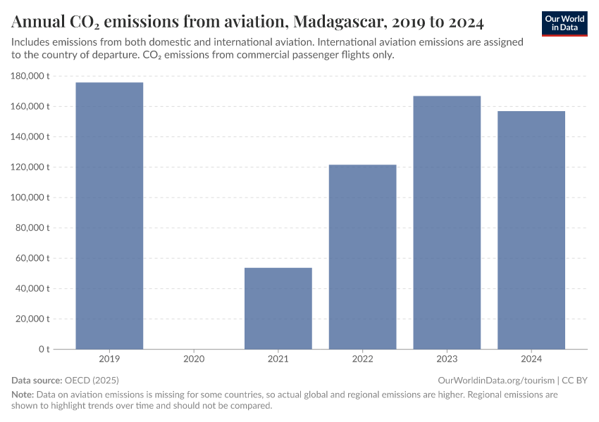 “Data Page: Annual CO₂ emissions from aviation”, part of the following publication: Bastian Herre and Veronika Samborska (2023) - “Tourism”. Data adapted from OECD. Retrieved from https://archive.ourworldindata.org/20250909-093708/grapher/annual-co-emissions-from-aviation.html [online resource] (archived on September 9, 2025).How to cite this data
