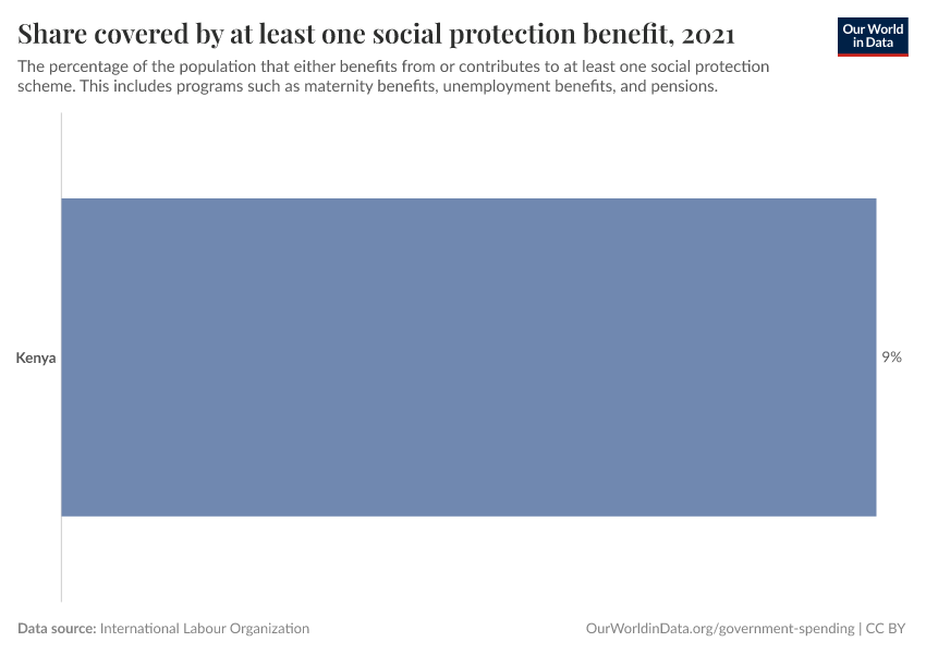 “Data Page: Share covered by at least one social protection benefit”. Our World in Data (2025). Data adapted from International Labour Organization. Retrieved from https://archive.ourworldindata.org/20251125-165536/grapher/share-covered-by-one-social-protection-benefit.html [online resource] (archived on November 25, 2025).