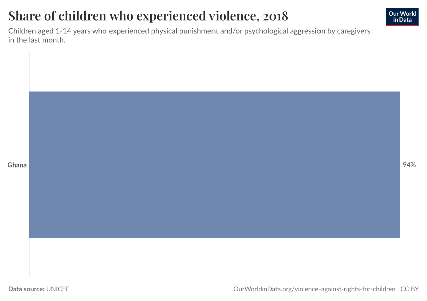 “Data Page: Share of children who experienced violence”. Our World in Data (2026). Data adapted from UNICEF. Retrieved from https://archive.ourworldindata.org/20251120-211749/grapher/share-of-children-who-experienced-violence.html [online resource] (archived on November 20, 2025).How to cite this data