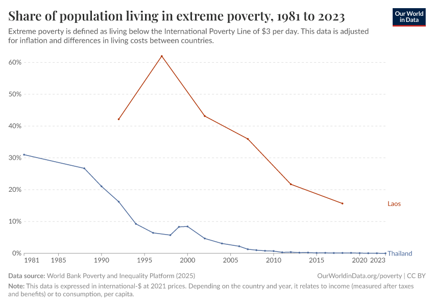 World Bank Poverty and Inequality Platform (2025) – with major processing by Our World in Data. “Share of population living in extreme poverty – World Bank” [dataset]. World Bank Poverty and Inequality Platform, “World Bank Poverty and Inequality Platform (PIP) 20250930_2021, 20250930_2017” [original data]. Retrieved November 16, 2025 from https://archive.ourworldindata.org/20251030-150046/grapher/share-of-population-in-extreme-poverty.html (archived on October 30, 2025).