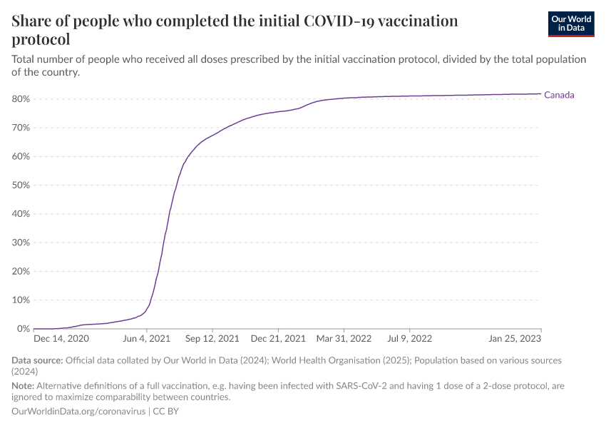 Official data collated by Our World in Data (2024); World Health Organisation (2025); Population based on various sources (2024) – with major processing by Our World in Data. “Share of people who completed the initial COVID-19 vaccination protocol” [dataset]. Official data collated by Our World in Data, “COVID-19, vaccinations”; World Health Organisation, “COVID-19, vaccinations (WHO)”; Various sources, “Population” [original data]. Retrieved December 8, 2025 from https://archive.ourworldindata.org/20250925-233948/grapher/share-people-fully-vaccinated-covid.html (archived on September 25, 2025).