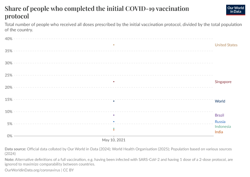 Official data collated by Our World in Data (2024); World Health Organisation (2025); Population based on various sources (2024) – with major processing by Our World in Data. “Share of people who completed the initial COVID-19 vaccination protocol” [dataset]. Official data collated by Our World in Data, “COVID-19, vaccinations”; World Health Organisation, “COVID-19, vaccinations (WHO)”; Various sources, “Population” [original data]. Retrieved December 27, 2025 from https://archive.ourworldindata.org/20250925-233948/grapher/share-people-fully-vaccinated-covid.html (archived on September 25, 2025).
