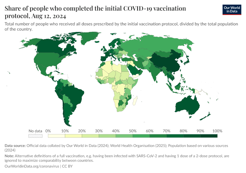 Official data collated by Our World in Data (2024); World Health Organisation (2025); Population based on various sources (2024) – with major processing by Our World in Data. “Share of people who completed the initial COVID-19 vaccination protocol” [dataset]. Official data collated by Our World in Data, “COVID-19, vaccinations”; World Health Organisation, “COVID-19, vaccinations (WHO)”; Various sources, “Population” [original data]. Retrieved December 13, 2025 from https://archive.ourworldindata.org/20250925-233948/grapher/share-people-fully-vaccinated-covid.html (archived on September 25, 2025).