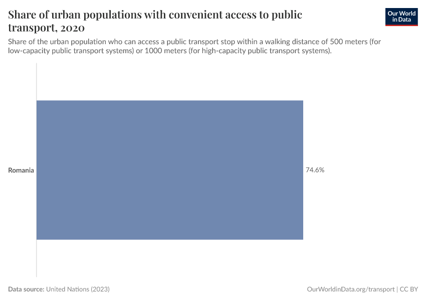 “Data Page: Share of urban populations with convenient access to public transport”, part of the following publication: Hannah Ritchie, Veronika Samborska, and Max Roser (2024) - “Urbanization”. Data adapted from United Nations (2023). Retrieved from https://archive.ourworldindata.org/20251109-142230/grapher/share-with-convenient-access-to-public-transport.html [online resource] (archived on November 9, 2025).