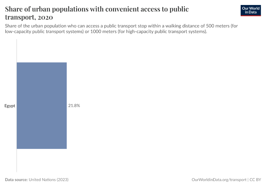 “Data Page: Share of urban populations with convenient access to public transport”, part of the following publication: Hannah Ritchie, Veronika Samborska, and Max Roser (2024) - “Urbanization”. Data adapted from United Nations (2023). Retrieved from https://archive.ourworldindata.org/20251109-142230/grapher/share-with-convenient-access-to-public-transport.html [online resource] (archived on November 9, 2025).How to cite this data