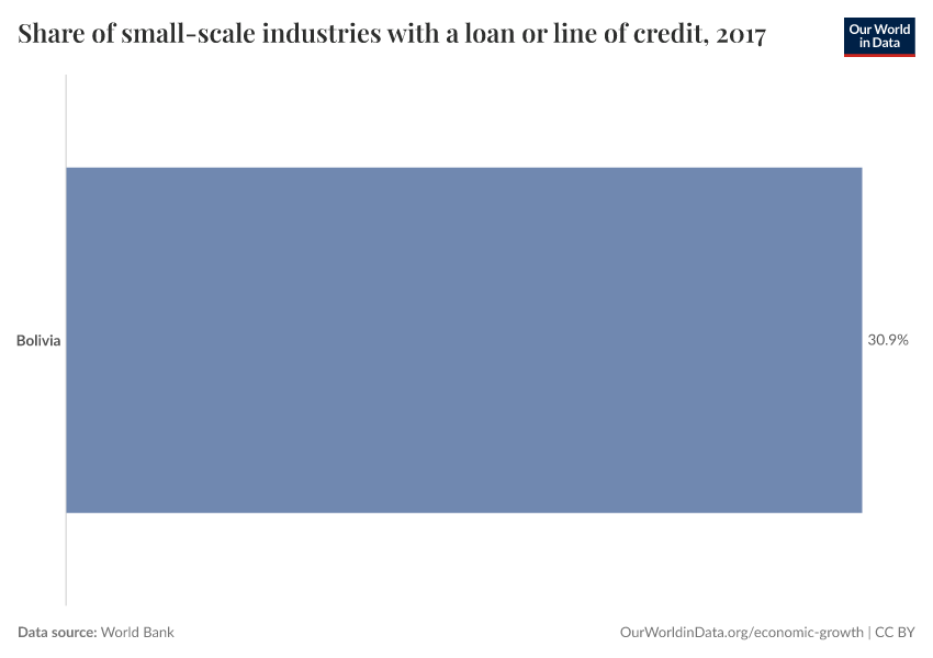 “Data Page: Share of small-scale industries with a loan or line of credit”. Our World in Data (2026). Data adapted from World Bank. Retrieved from https://archive.ourworldindata.org/20251125-165536/grapher/smalsmall-scale-industries-loan.html [online resource] (archived on November 25, 2025).