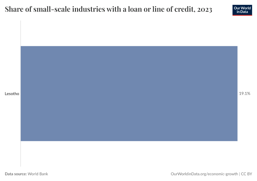 “Data Page: Share of small-scale industries with a loan or line of credit”. Our World in Data (2026). Data adapted from World Bank. Retrieved from https://archive.ourworldindata.org/20251125-165536/grapher/smalsmall-scale-industries-loan.html [online resource] (archived on November 25, 2025).