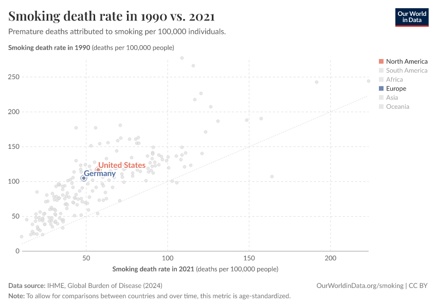 - Death rate from smokingIHME, age-standardized