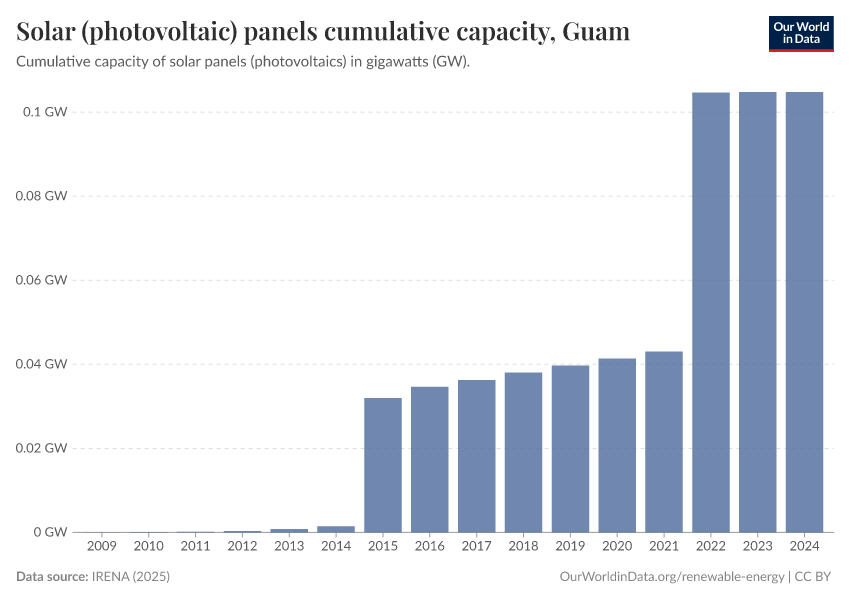 “Data Page: Solar photovoltaic capacity”, part of the following publication: Hannah Ritchie, Pablo Rosado, and Max Roser (2023) - “Energy”. Data adapted from IRENA. Retrieved from https://archive.ourworldindata.org/20250909-093708/grapher/solar-pv-cumulative-capacity.html [online resource] (archived on September 9, 2025).How to cite this data