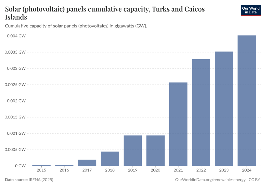 “Data Page: Solar photovoltaic capacity”, part of the following publication: Hannah Ritchie, Pablo Rosado, and Max Roser (2023) - “Energy”. Data adapted from IRENA. Retrieved from https://archive.ourworldindata.org/20250909-093708/grapher/solar-pv-cumulative-capacity.html [online resource] (archived on September 9, 2025).How to cite this data