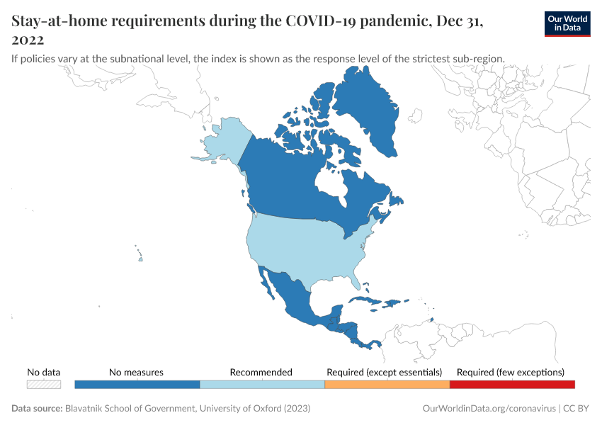 Blavatnik School of Government, University of Oxford (2023) – with minor processing by Our World in Data. “Stay-at-home requirements during the COVID-19 pandemic” [dataset]. Blavatnik School of Government, University of Oxford, “Government Response Tracker (OxCGRT)” [original data]. Retrieved December 7, 2025 from https://archive.ourworldindata.org/20250909-093708/grapher/stay-at-home-covid.html (archived on September 9, 2025).
